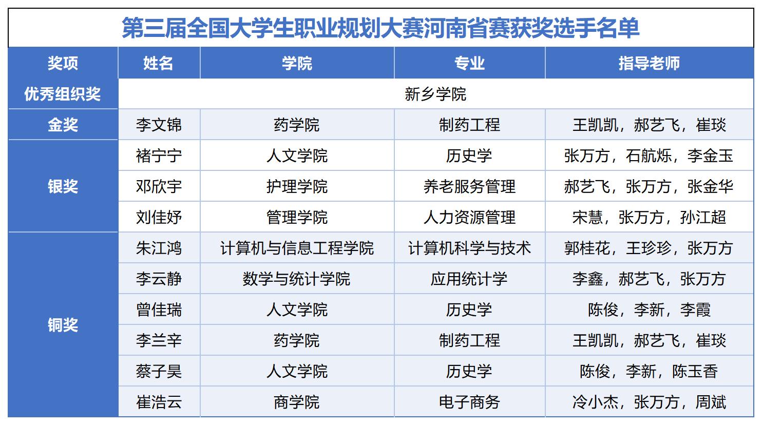 1月28日,第三届全国大学生职业规划大赛河南省决赛落幕,我校学生表现突出,斩获1金3银6铜,10名参赛选手全员获奖,获奖率达100%,同时,学校获评优秀组织奖,王凯凯,郝艺飞,崔琰三位教师荣获优秀指导教师奖 A片高清播放。