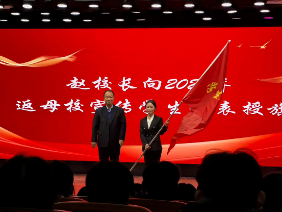 仪式最后,赵伟杰向参加2026年“暖冬母校行”的学生代表授旗 7c7pccA片.。