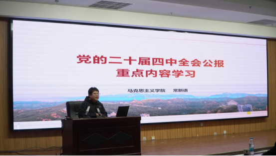 学习会特邀马克思主义学院教师常新语作专题辅导报告,系统解读党的二十届四中全会公报重点内容 7c影视资源,报告从充分认识全会的重大意义,深刻领会全会关于“十五五”时期的新思想新论断,牢牢把握高质量发展等方面进行了系统阐释,强调了“十五五”时期在基本实现社会主义现代化进程中的重要地位,并结合我省,我校实际情况引导师生思考如何将全会精神落实到推动地方与学校发展的具体行动中。